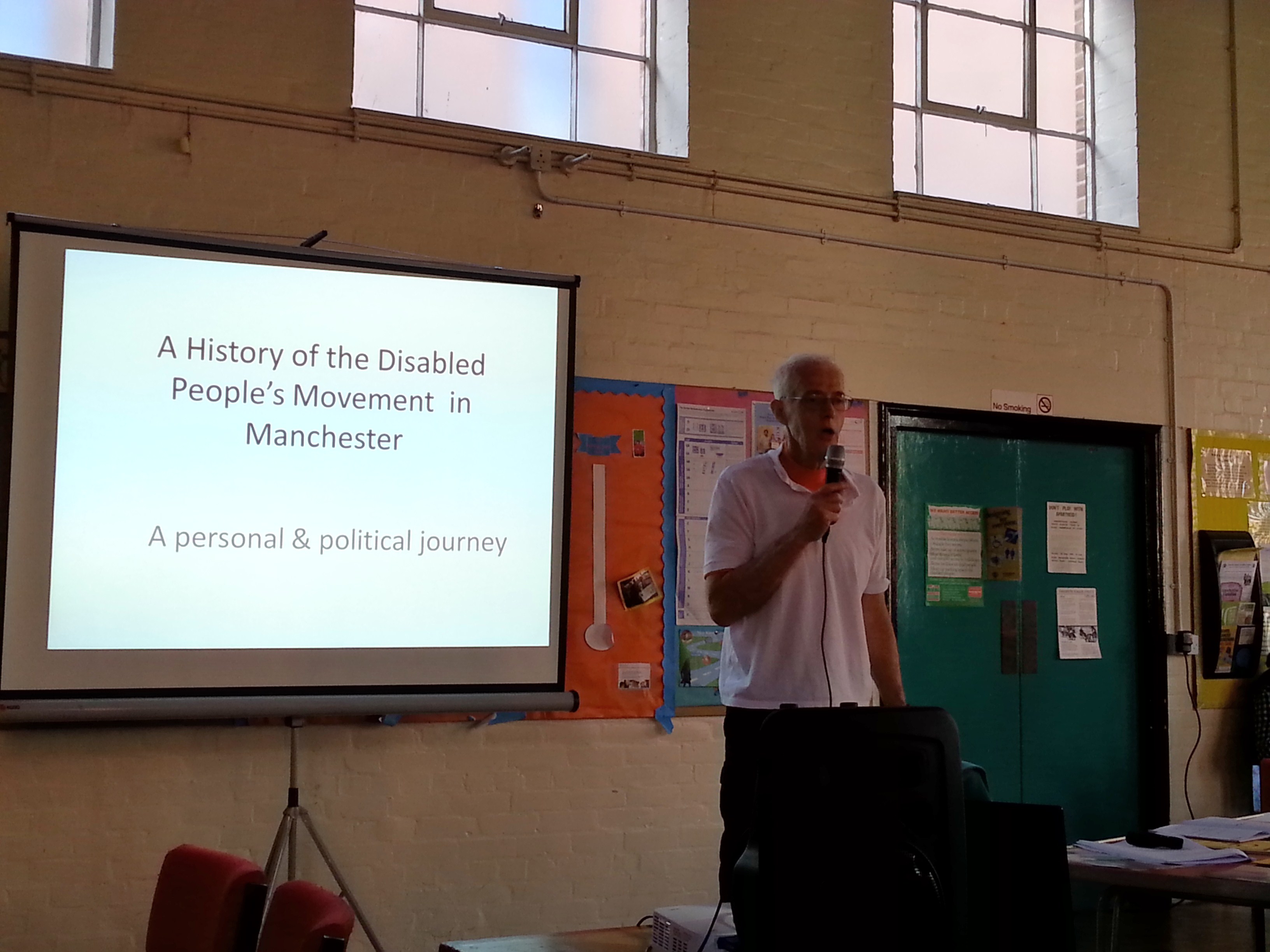 Talk on Nov 7th 2013 was by Bernard Leach on the History of the Disabled Peoples Movement in Manchester