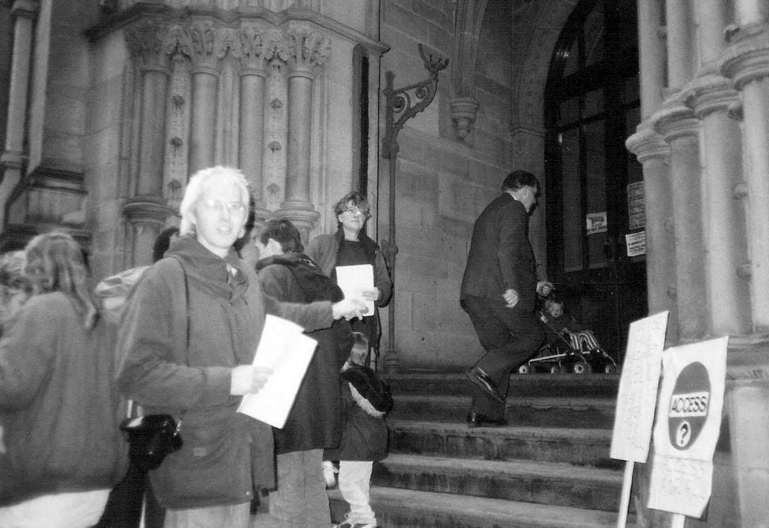 Bernard Leacha demonstration outside Manchester Town Hall demanding full access for disabled people in 1986