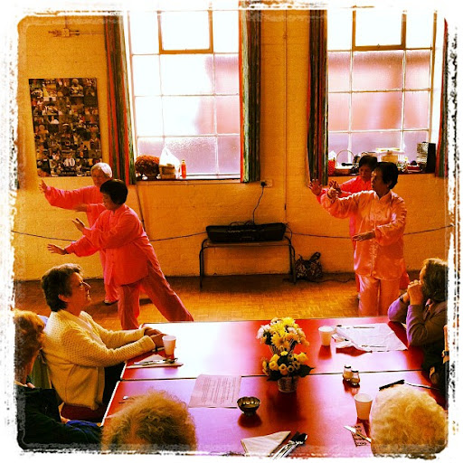 The elders from Wai Yin Women’s Society in Manchester give a Tai Chi demonstration at Chorlton Good Neighbours on April 1st 2012. They even managed to get some in the audience to join in with them