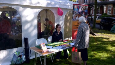 On a lovely sunny, Saturday autumn day (22-09-12) chorlton good neighbours had a stall at the Faith on the Green event on Chorlton Green. It was held to mark the 500th anniversary of St Clement’s Church. Thanks to Carolyn, Jane & Janice who came on the stall. Our Good Neighbour’s balloons were popular with children, though it takes practice to assemble them properly!