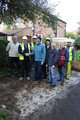 Today we also had the official opening of our patio area – kindly donated by Brammell Construction. Unfortunately with all we’d been up to on the plot our lovely new patio was looking a little bit muddy! Never mind, hopefully the big grins in our photo distracted from the dirt.