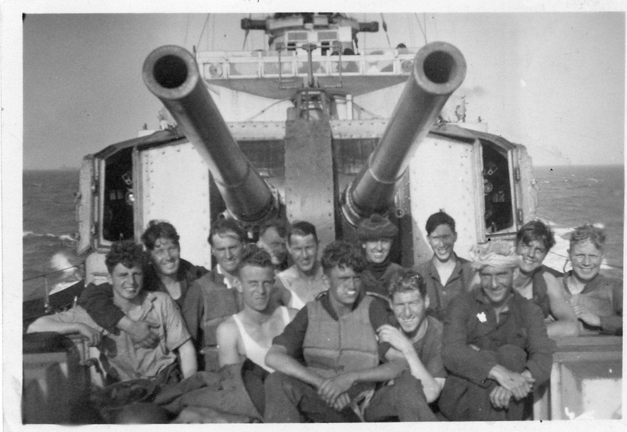 Bob Cowan, 4th from right, with shipmates onboard the HMS Ashanti off Iceland, 1942