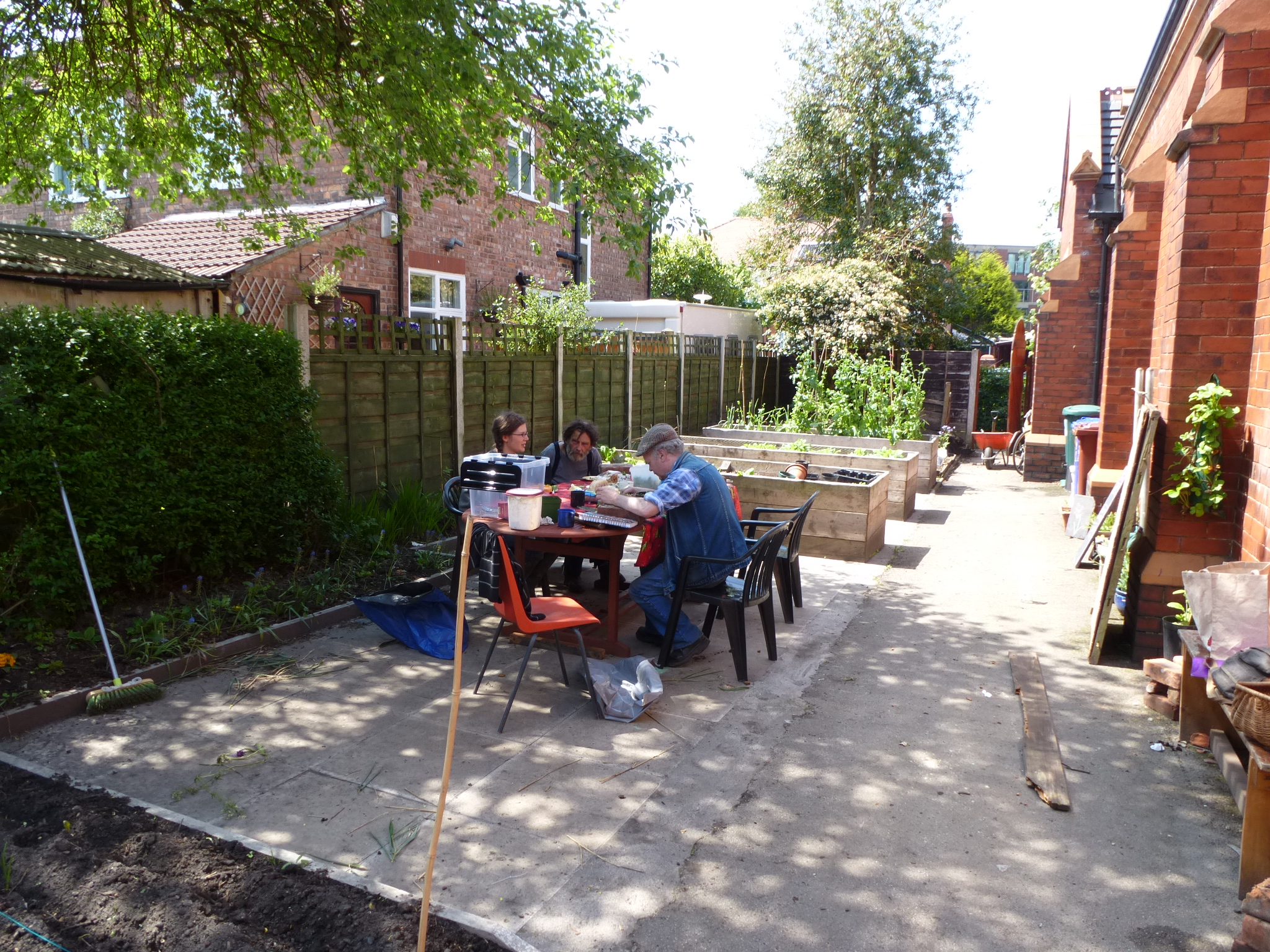 As part of a project to get more older men involved in Chorlton Good Neighbours we formed a Gardening Club at St Ninian’s Church where we are based. Our aim was to transform a piece of wasteland at the Church into a garden and vegetable plot that all our members could enjoy