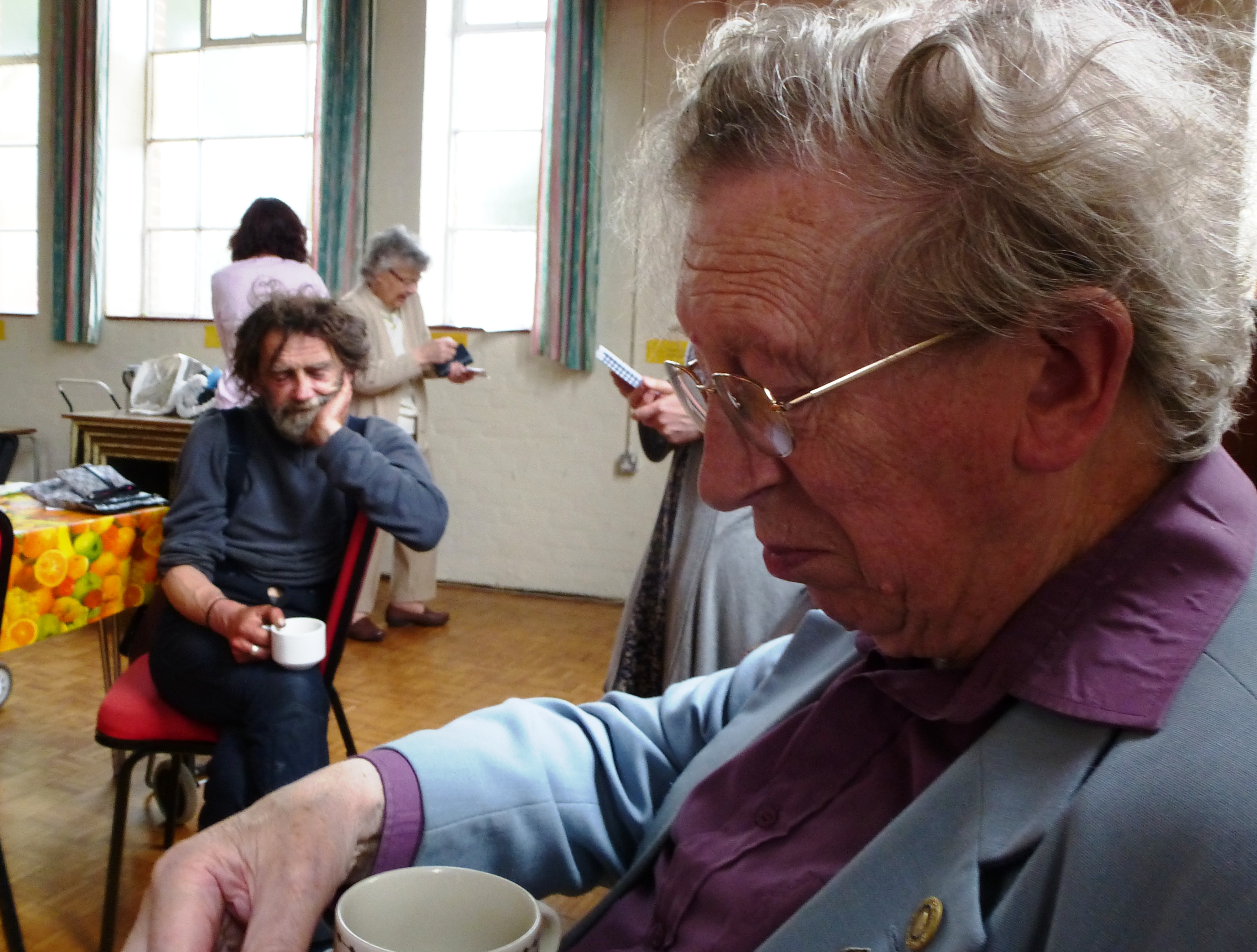 At the June 27th Coffee Morning, the Chorlton Coffee Festival came to Good Neighbours. Hannah Davies, the associate producer of the festival, brought along some filter coffee for people to drink. In addition, Josie Teubler had managed to get donations of fresh scones & jam from theTea Hive and chocolate cake from the ever-generous Barbakan. This all went down like …er…hot cakes. After Hannah’s talk a vote was held on tea v coffee and tea just about won out