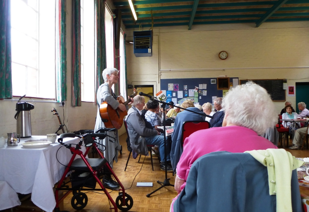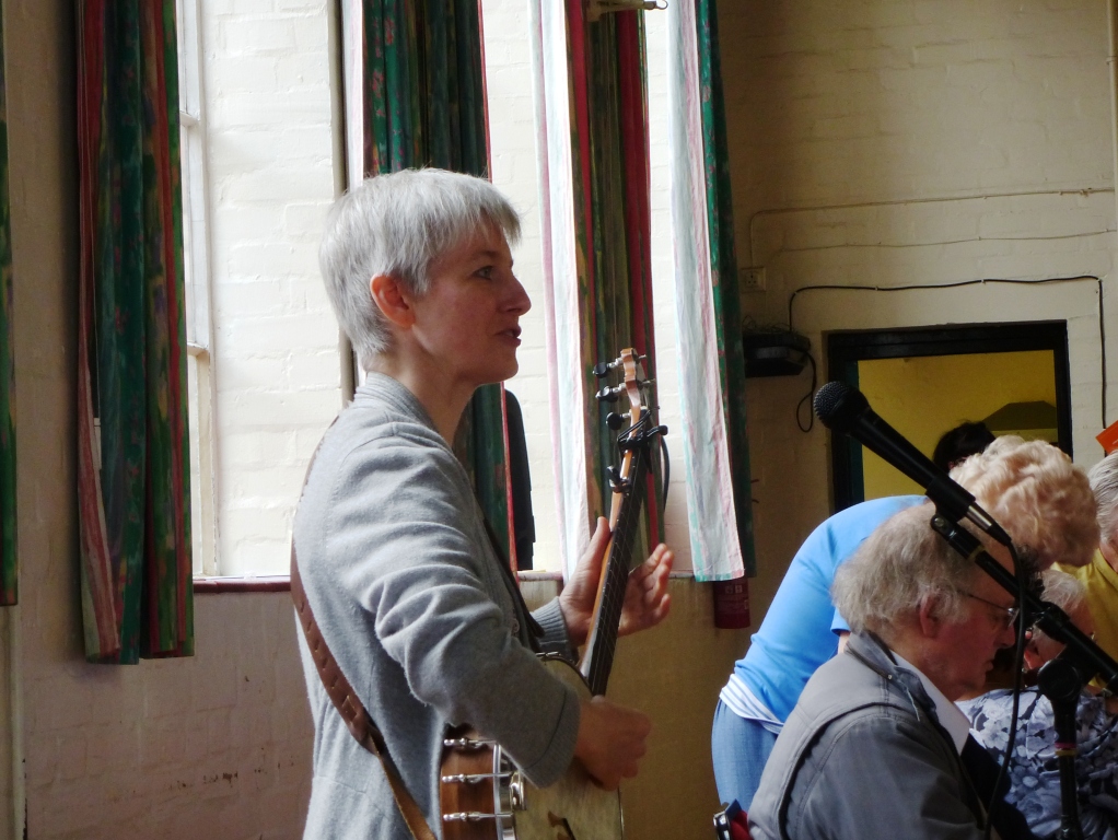 Then Zoe Mulford, an American folk singer and songwriter based in Manchester, played banjo & guitar and sang several songs “Will You Go Lassie Go”; the Paul McCartney song “Blackbird Singing in the Dead of Night”; the folk song “The Fox”;’ Gershwin’s “Summertime”; the Fats Waller classic “Ain’t Misbehavin’ ” and finally Leadbelly’s “Goodnight Irene”