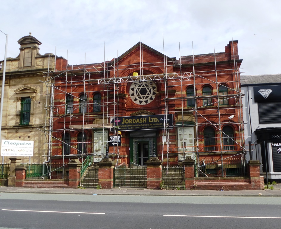 Built in 1856-8 the Great Synagogue on Cheetham Hill Road, remained the most prestigious synagogue in Manchester until the 1960’s when most of its users had moved further down Cheetham Hill Road or further afield and so were unable to walk to the synagogue as orthdox Judaism requires. It was demolished in 1981;