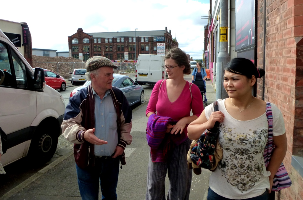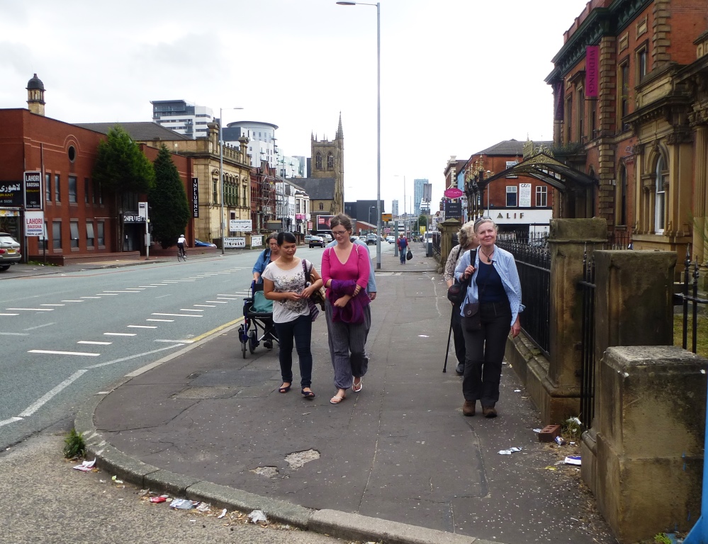 Oy-Chee, Carolyn, Paula and Phillip walking up Cheetham Hill Road