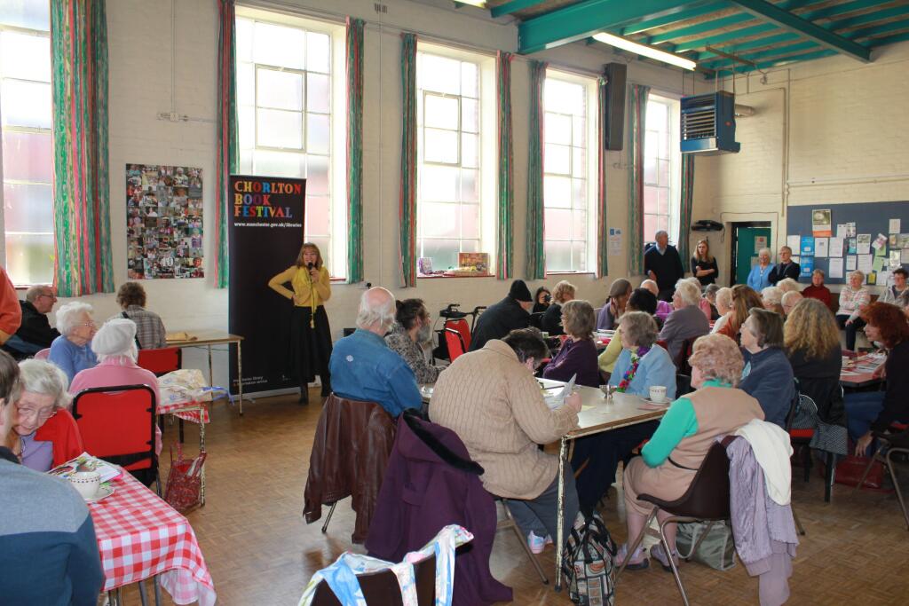 Christine McMahon a story teller came to Chorlton Good Neighbours Coffee morning last week (21 Nov 2013) as part of Chorlton Book Festival and held a large audience spellbound
