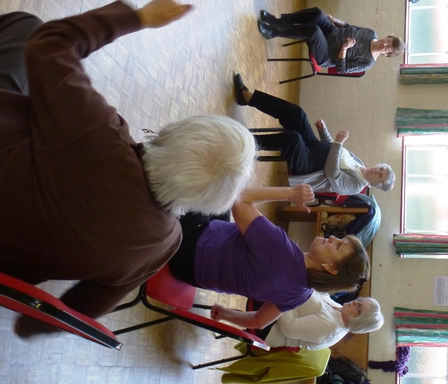 Karen Tynan runs the Chorlton Good Neighbours exercise class on Mondays at 1.30pm. They are one of 3 classes we run each week and they are graded by difficulty. This class of nearly 20 older people has a mix of seated and standing activities and several members are in their 80’s