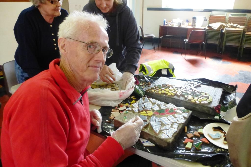 Making Mosaic stepping stones for the Good Neighbours Garden