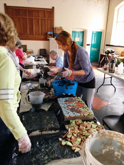 Tony and Paulette finishing off their mosaics