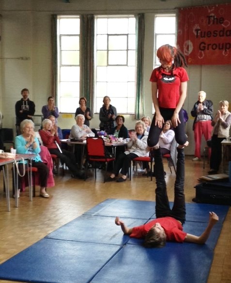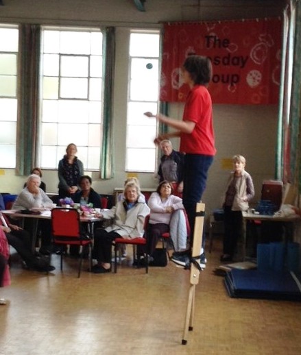 At Chorlton Good Neighbours Sunday tea on October 5th , we were entertained by the wonderful Unity Toy Box Circus, who shared their amazing balancing, juggling, hula hooping and uni-cycling skills.