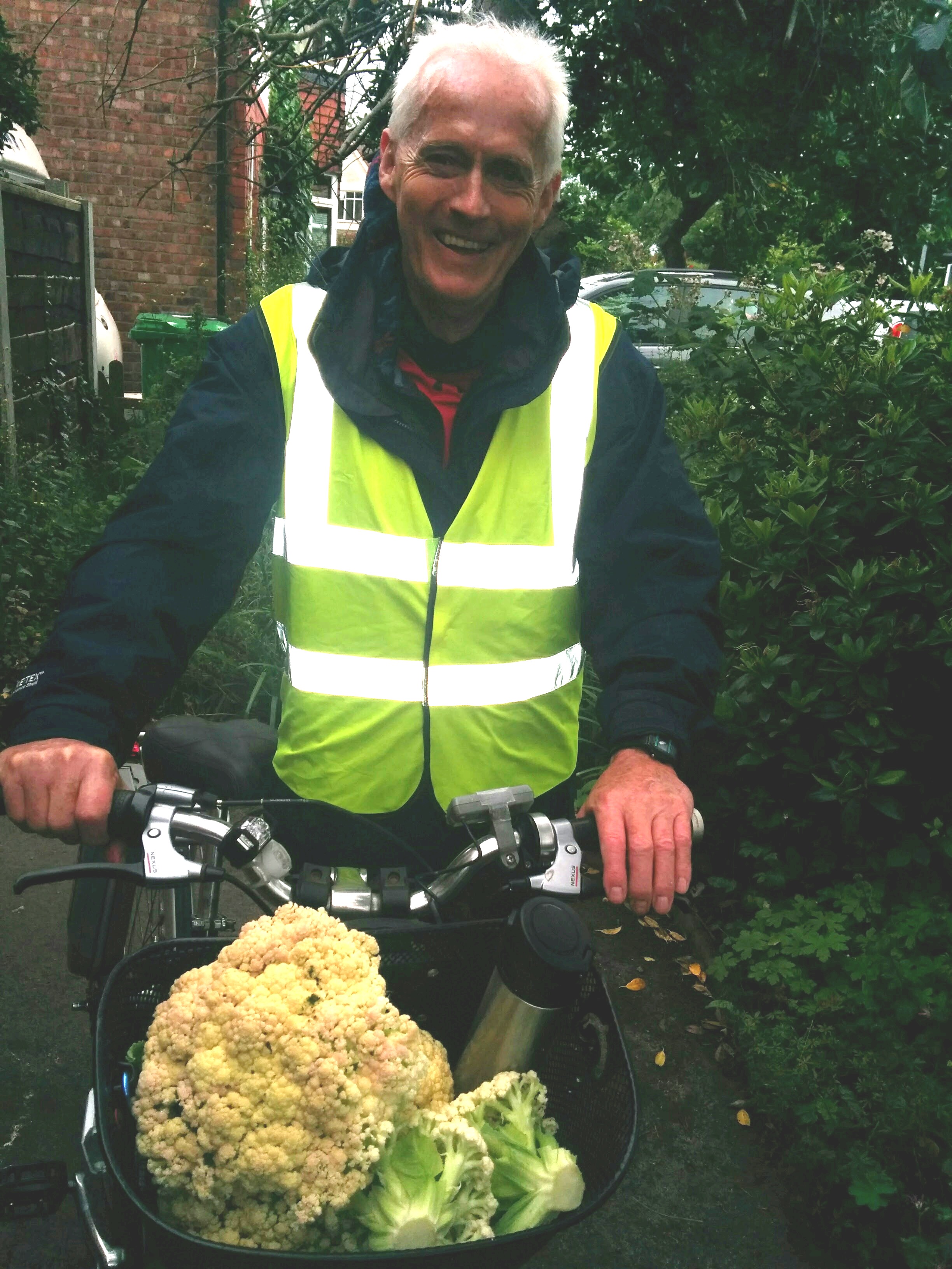 Bernard taking home the cauliflowers which we harvested at the end of the open day as they were in their prime and would bolt if we left then there any longer