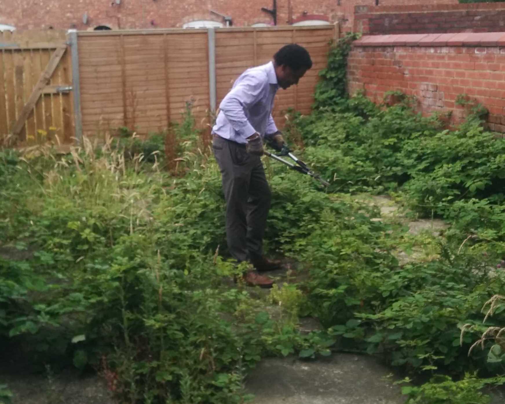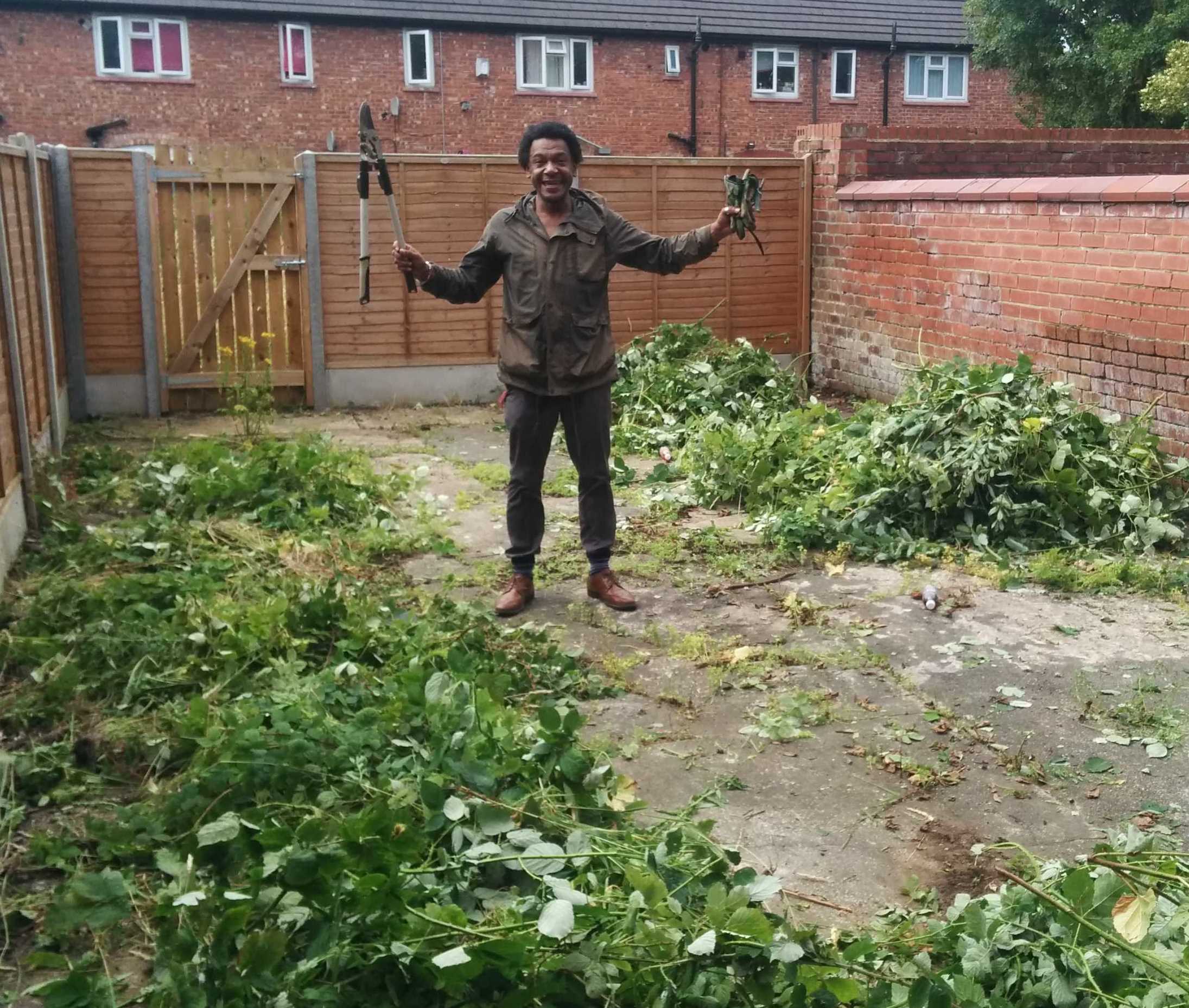 In the meantime, here are some photos of Devon (from Southways Housing) and myself (Bernard) clearing a load of brambles from the back yard of the shop unit today (18-07-16) and then having a coffee at the wonderful cafe next door