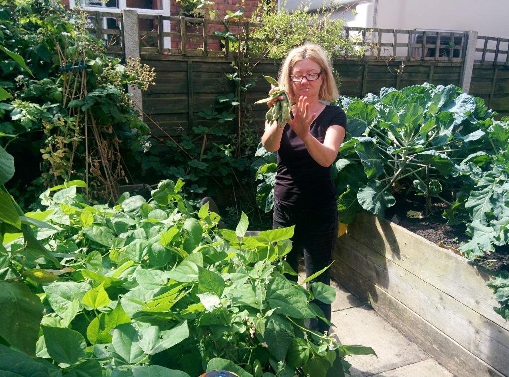 Here is Geraldine with some of the beans she has been picking