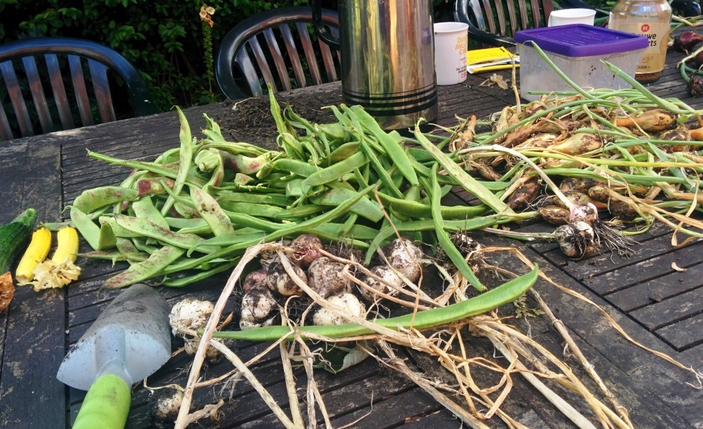 Some of this weeks haul – shallots, garlic, beans & courgettes