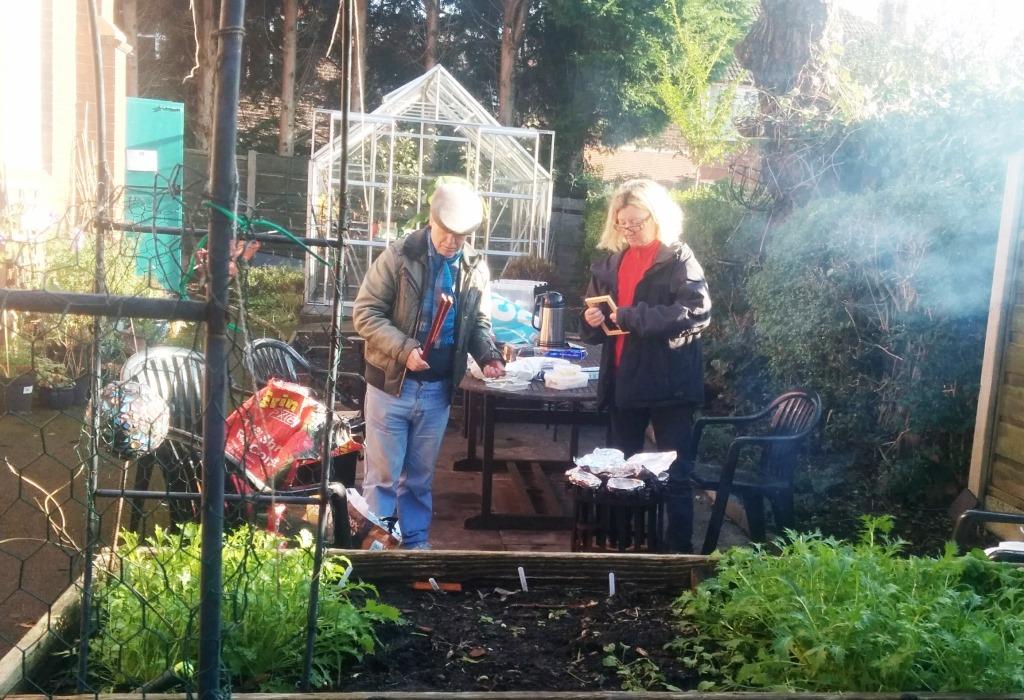 The Good Neighbours garden is now getting much more sunshine now that the big willow tree has been pollarded. We have also started getting into have a small fire to cook baked potatoes, veggie sausages and the like at our Friday morning get togethers