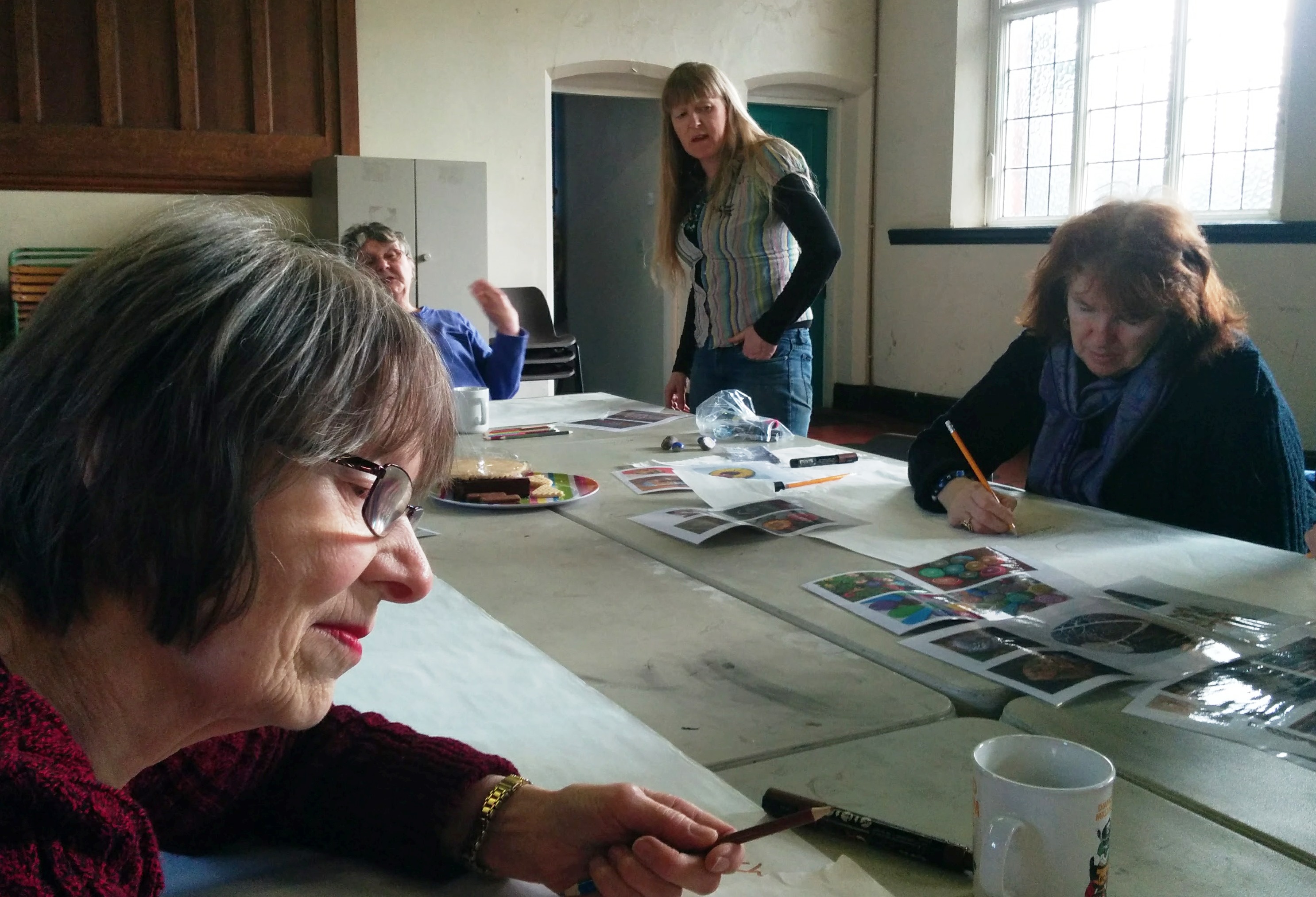 Lara and Nicola, two local artists are helping us in two art-based projects to celebrate Chorlton Good Neighbours 50th anniversary this year. One of these is the pebble border where we aim to have individually designed and hand painted pebbles to fill a borderat the side of the path outside the Good Neighbours office, The idea is that they should represent some aspect of what Good Neighbours means to people and more generally the theme of changing Chorlton