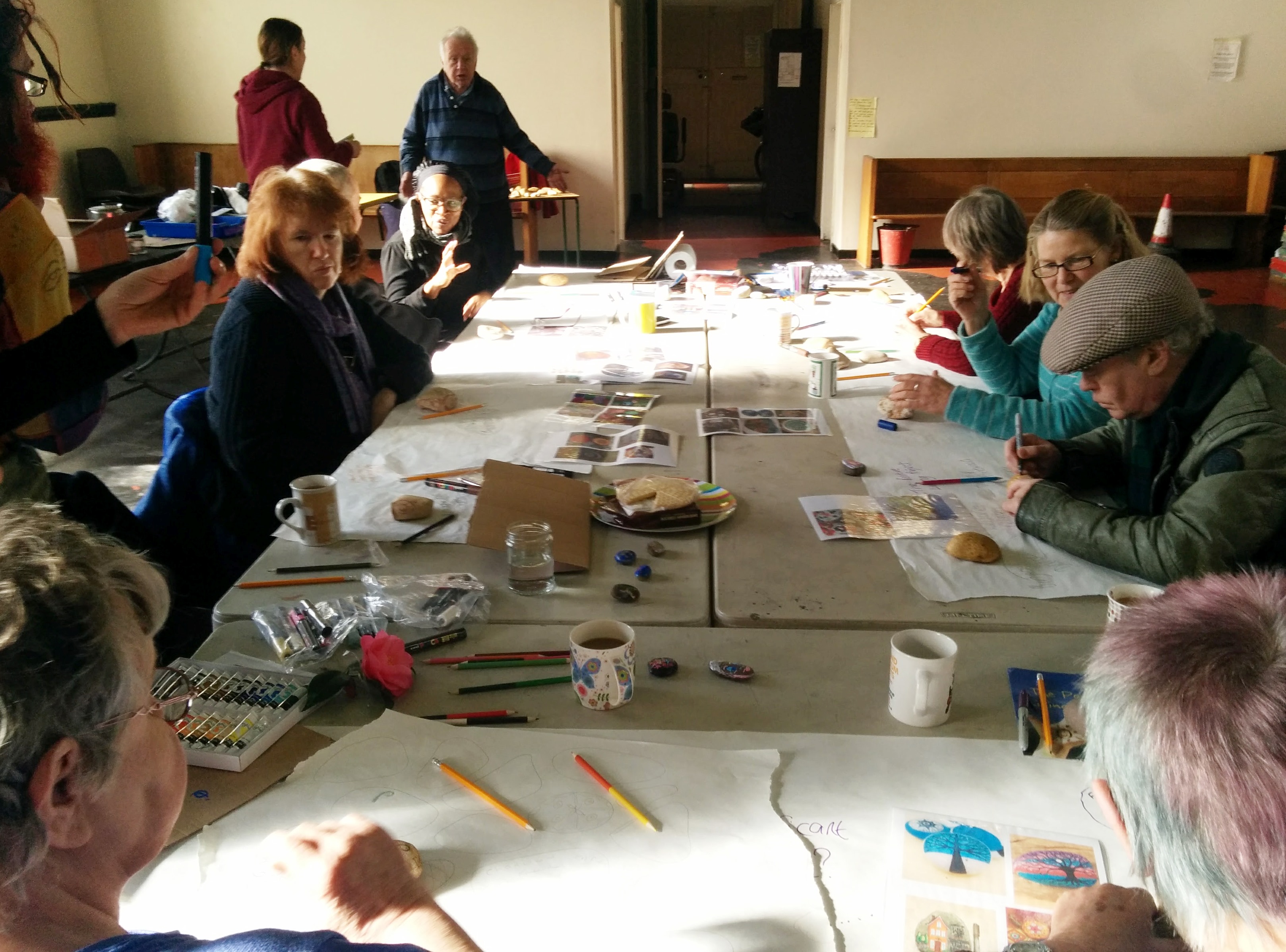 Today, 24th February we had our first workshop to design and draw some pebbles. Here are some photos of the event