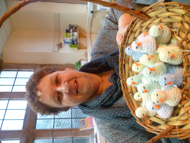 Fundraising :CGN Community worker, Moira Bowater raised £200 by knitting spring chickens, filled with a crème egg.