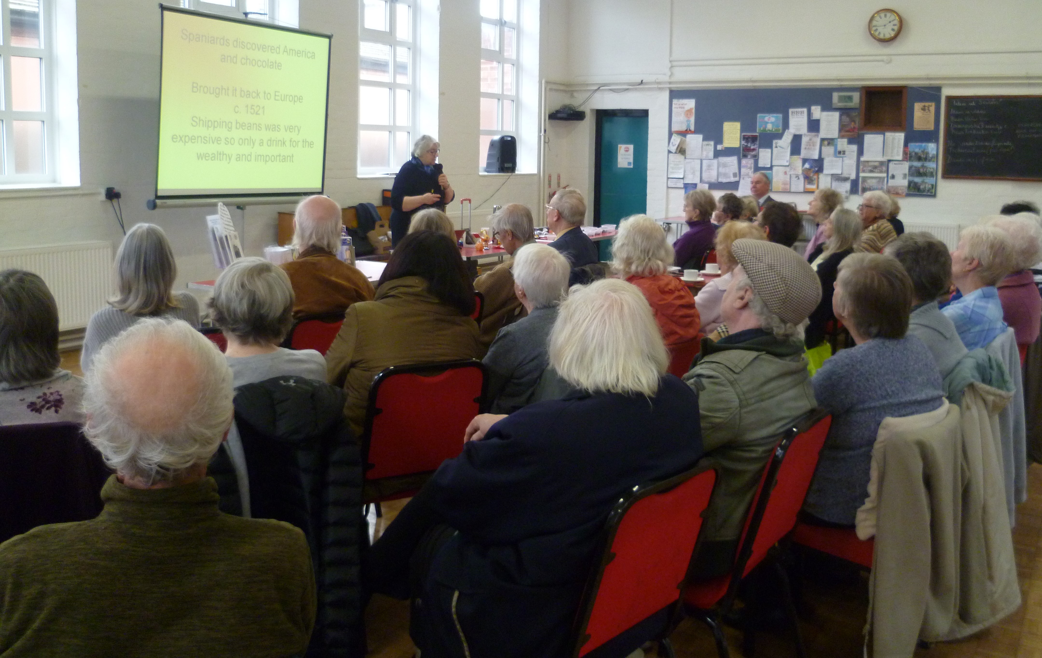 The thursday 2nd November History talk saw 40 people come to listen to Diana Leitch talking about the science of chocolate, including being able to sample the drink according to the recipe that was prepared by the Aztecs 2,000 years ago..