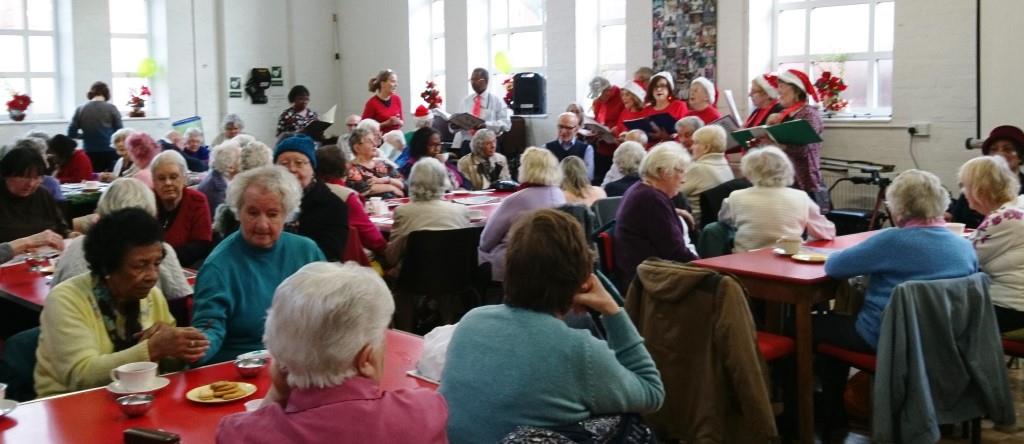 The Good Neighbours group of singers, the Meoldocis, performing at the coffee morning on Thirs Dec 7th 2017. Next week they will be singing at a local nursing home and they are already getting into the festive mood