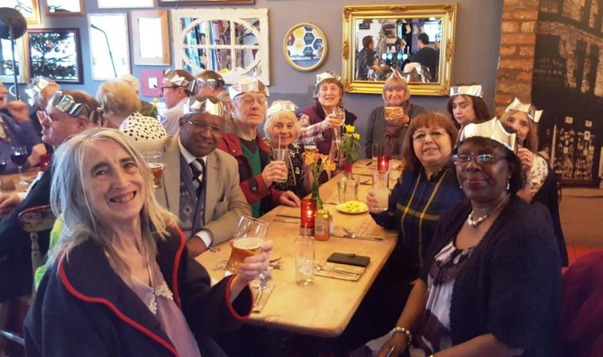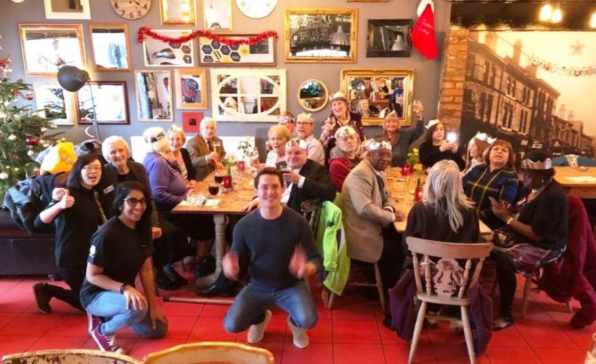 10 Chorlton Good Neighbours people were invited to Solomons bar on Wilmslow Rd Withington, for a free Christmas dinner on Tuesday 19th December by Heineken’s Brewery. The trip was part of the firm’s commitment to the community and support for older Manchester residents. Other older people from Didsbury Good neighbours also went along. Young people from Heineken’s were there, including young female engineers who reportedly loved their placement with the Brewing firm.