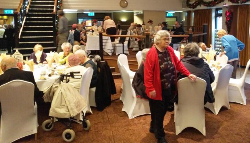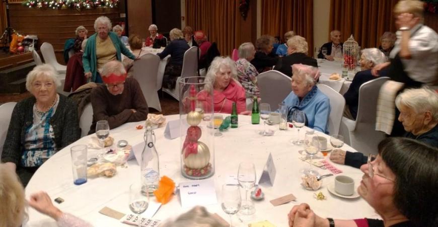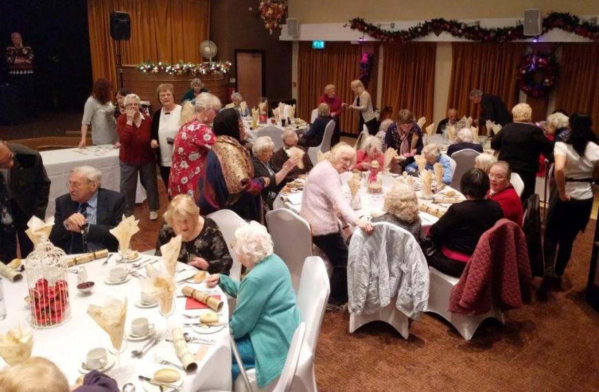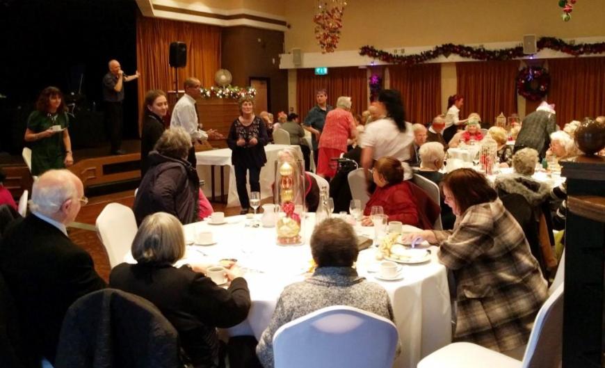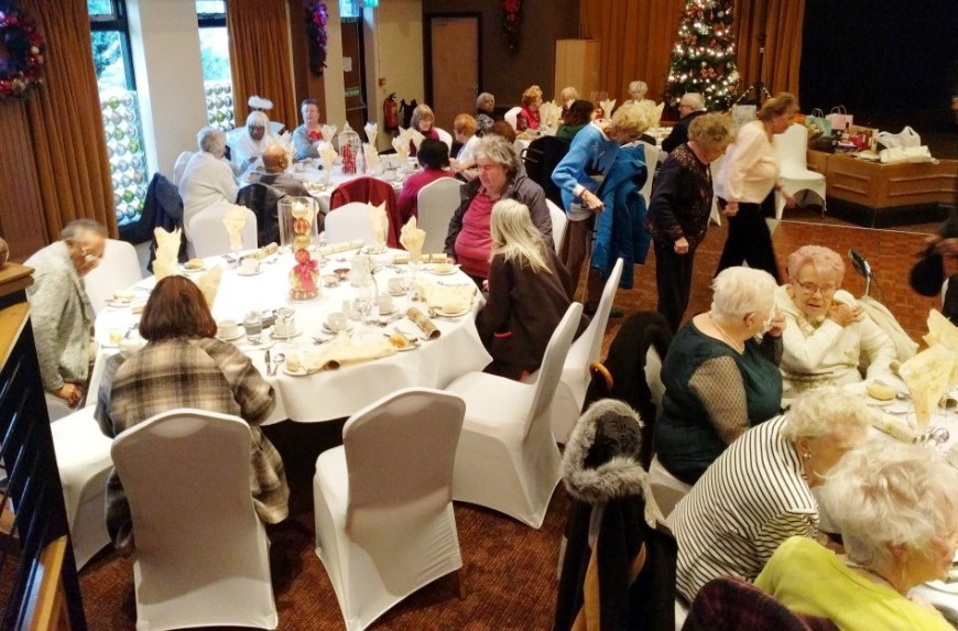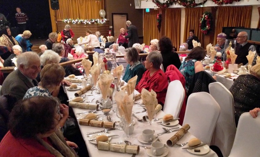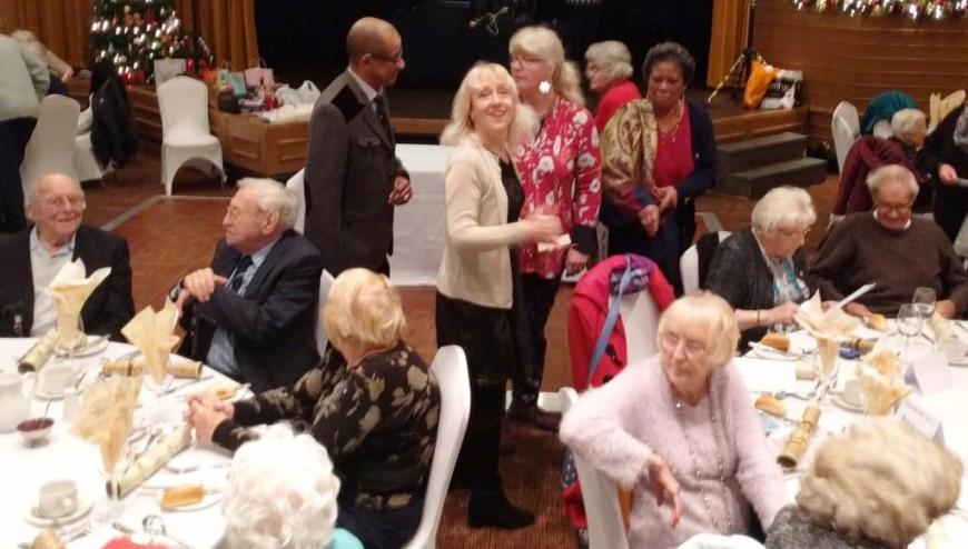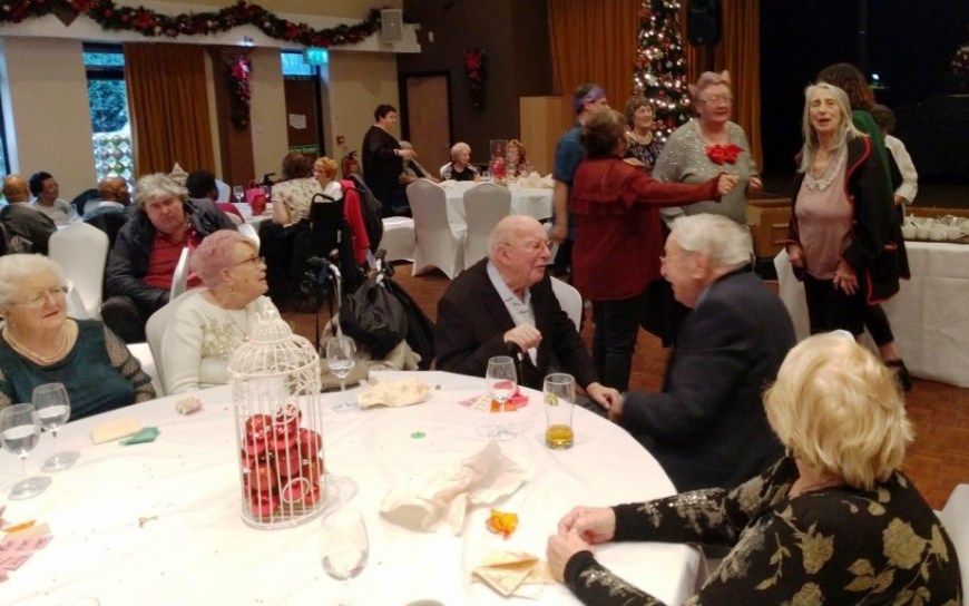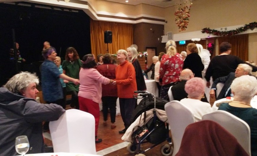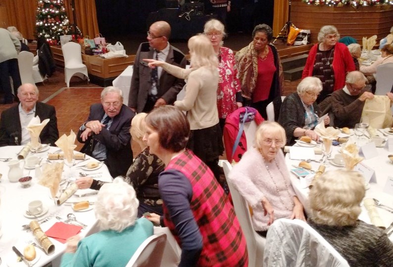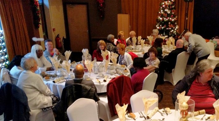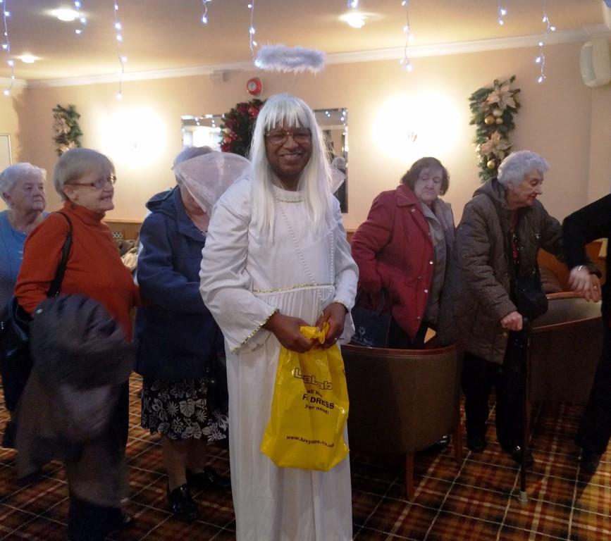 At the end of what has been a successful year for Chorlton Good Neighbours, we had our Christmas Meal at the Hough End Centre. There were over 100 people at the meal, a highlight of which was a visitation by Angel Dennis (see below), a lot of dancing and Helen informing us that Good Neighbours had just received confirmation that their grant from the City Council has been approved for another 3 years