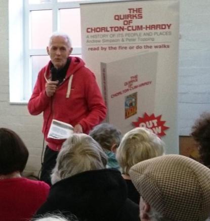 A packed History group (nearly 60 attended) heard Andrew Simpson & Peter Topping give a talk based round their new book “The Quirks of Chorlton-cum-Hardy” – a collaboration between a local historian (Andrew) and an artist (Peter)