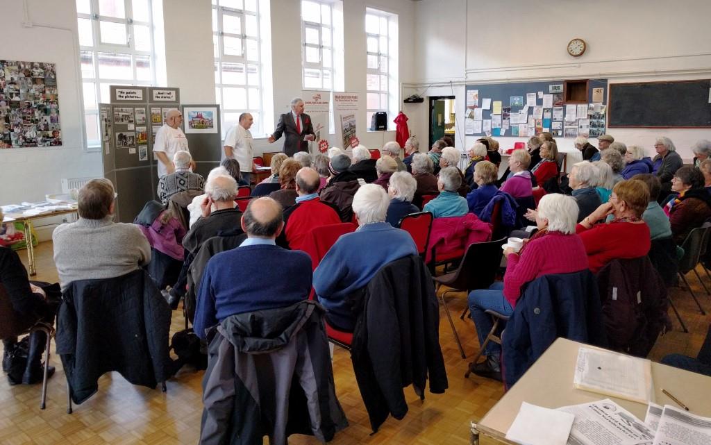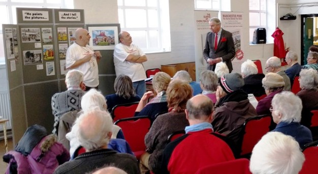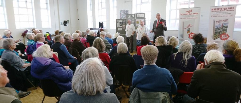 A packed History group (nearly 60 attended) heard Andrew Simpson & Peter Topping give a talk based round their new book “The Quirks of Chorlton-cum-Hardy” – a collaboration between a local historian (Andrew) and an artist (Peter)