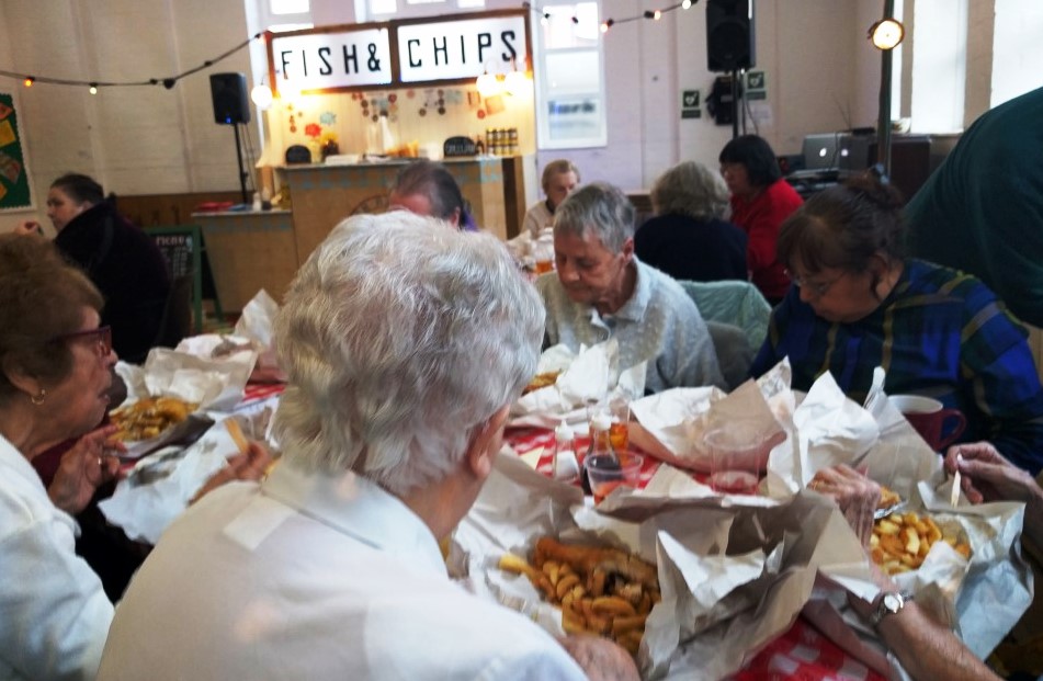Well, what an amazing performance is was. Well, what is not to like about a play which starts with everyone having a full meal of chip shop fish and chips – my favourite food! This was followed with cake and a cup of tea