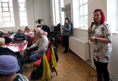 Jackie talking to those attending the coffee morning