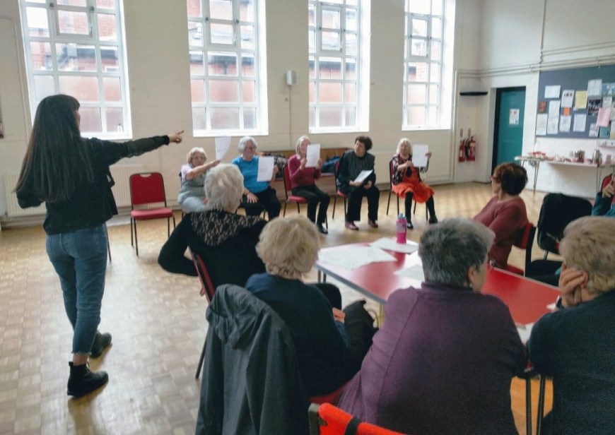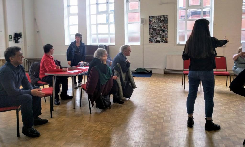 Yesterday (04-04-18) was the first session of the drama workshop at Good Neighbours. Over 20 of us assembled with little idea of what to expect. The workshop was led by Emily Smith who has worked with the West Yorkshire Playhouse and the National Youth Theatre. It was the first of three sessions she is leading.