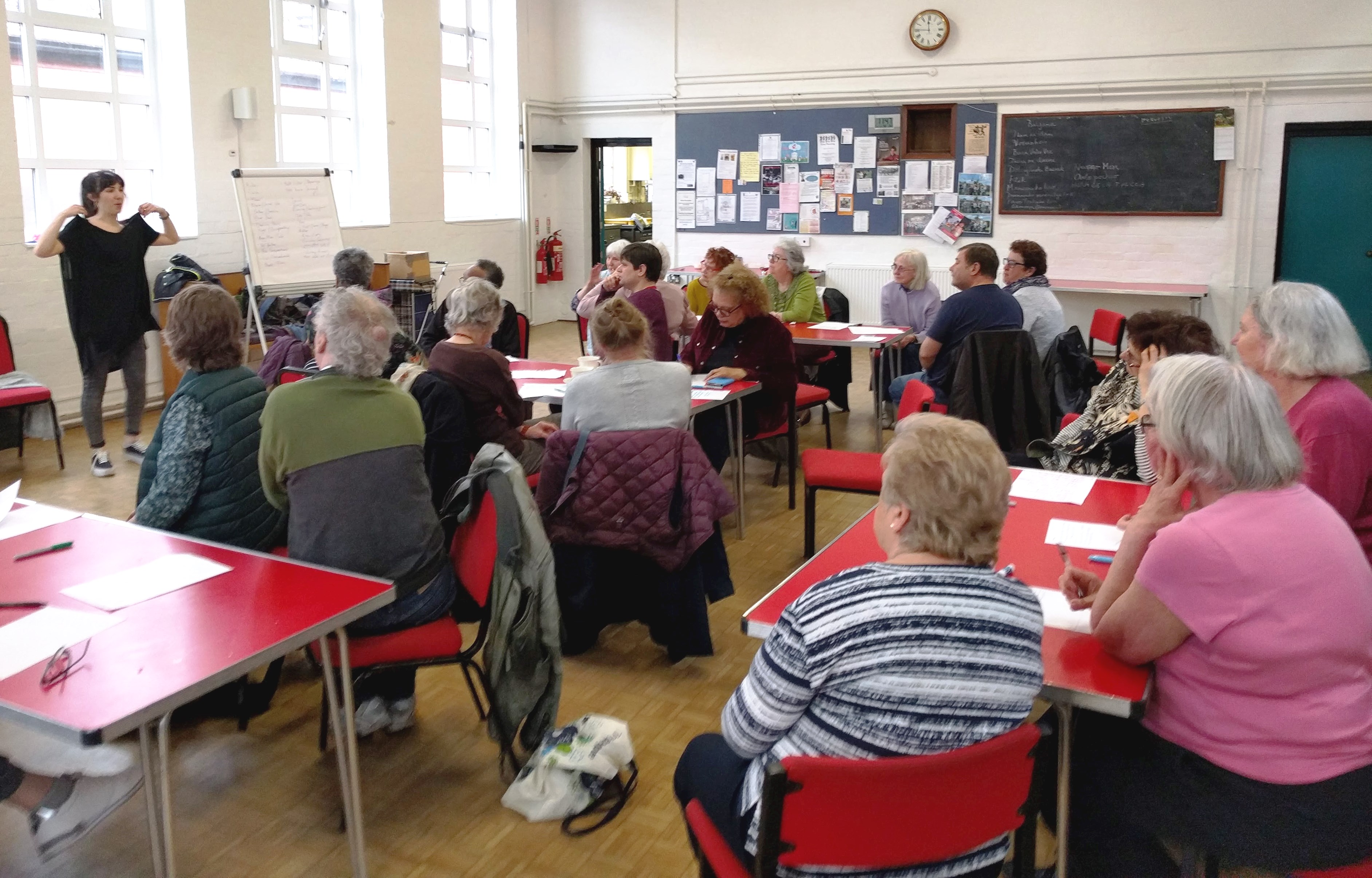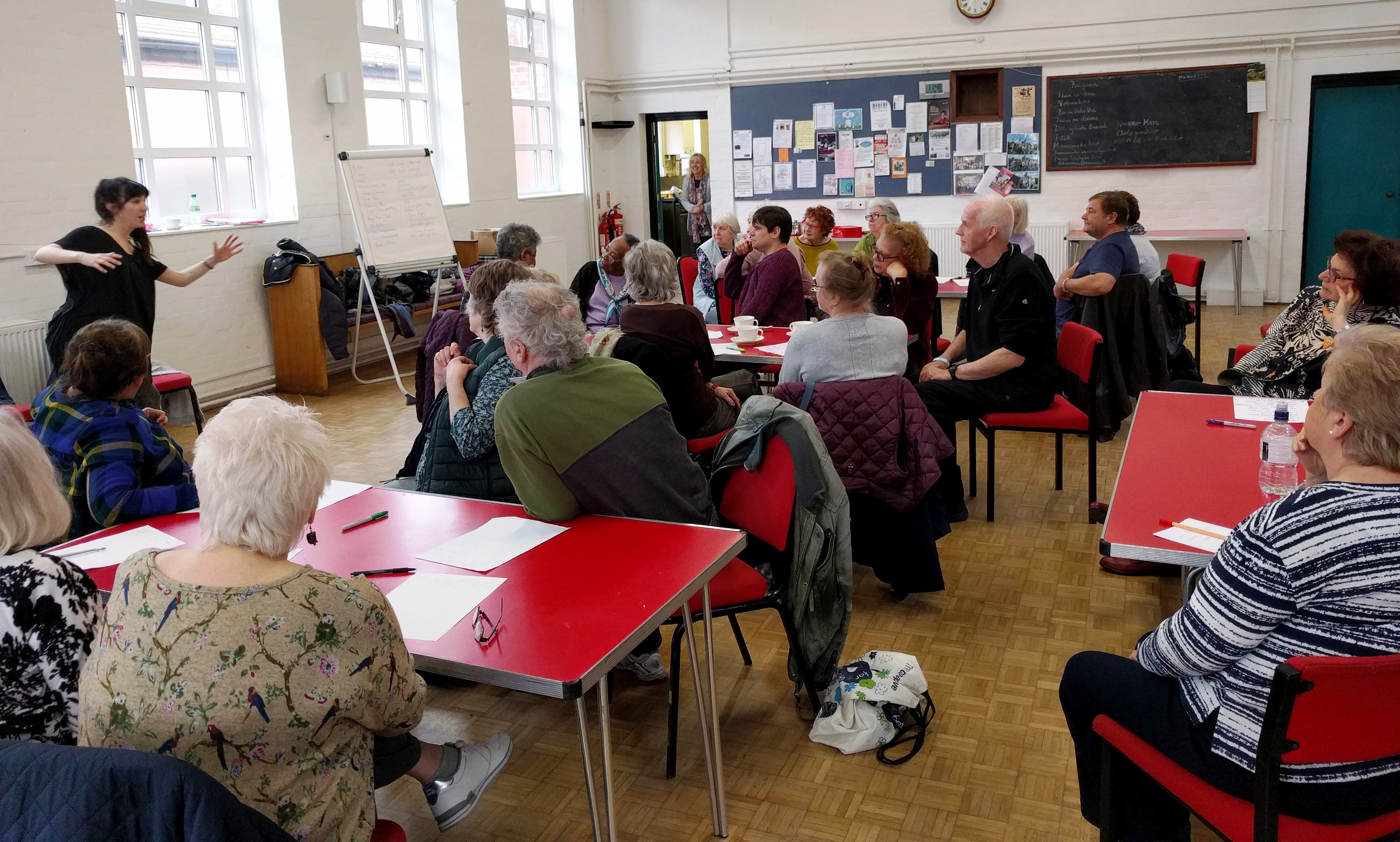 26 people turned up for the second drama workshop on Wednesday (11-04-18). It included many new people who had heard about what the sessions were like and wanted to find out more. It was another hugely enjoyable session. A series of exercises led by Emily meant that we moved via simple wordplay and physical activities into constructing stories. There was a great buzz around the room