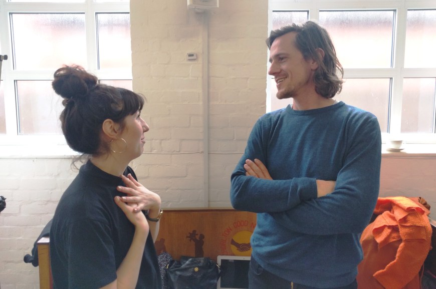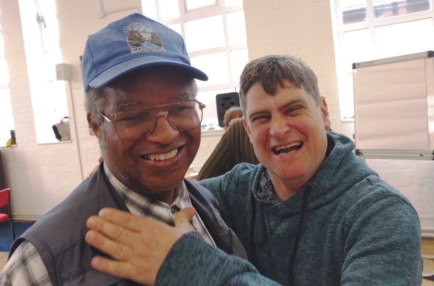 Emily talking to David Jackson from Manchester School of Art at Manchester Metropolitan University. David came along to talk about his storytelling bot project he would like to try out with Chorlton Good Neighbours