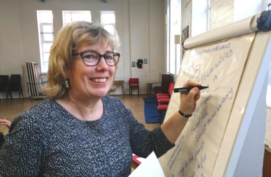 Debra with volunteers in the training session