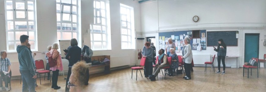 Kathy took us again this week for our fourth drama group workshop. We followed up on last week exercise and extended our short sketches (or vignettes) on “The first time I…..” For my group this was about the first time Christine had been on an aeroplane as a teenager. We also did a variety of other exercises centering on voice and breathing
