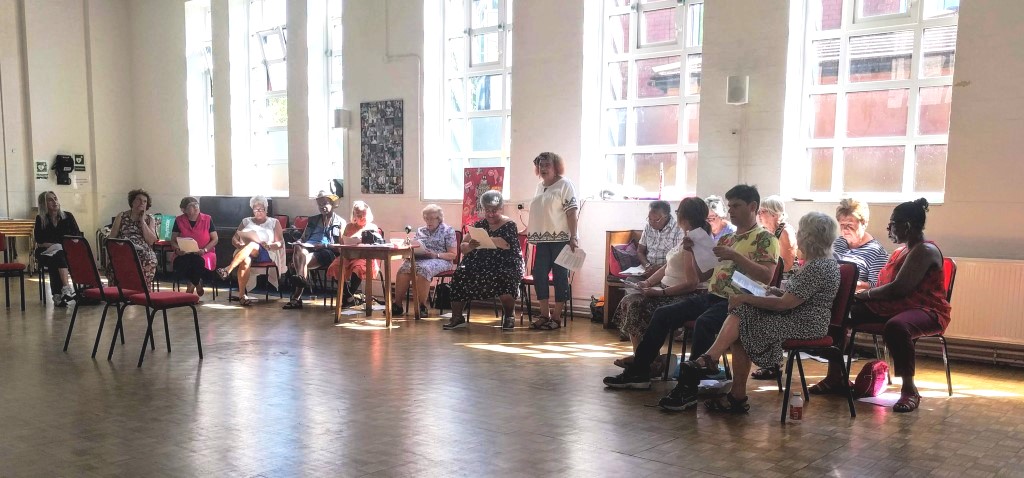 Photos from some of the rehearsals leading up to our first performance of our play ‘LoveChester 70s – What Are You Doing Sunday Baby’ at the Good Neighbours coffee morning on Thurs July 12th 2018
