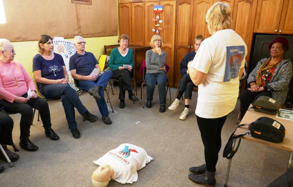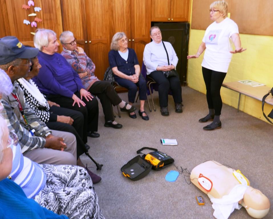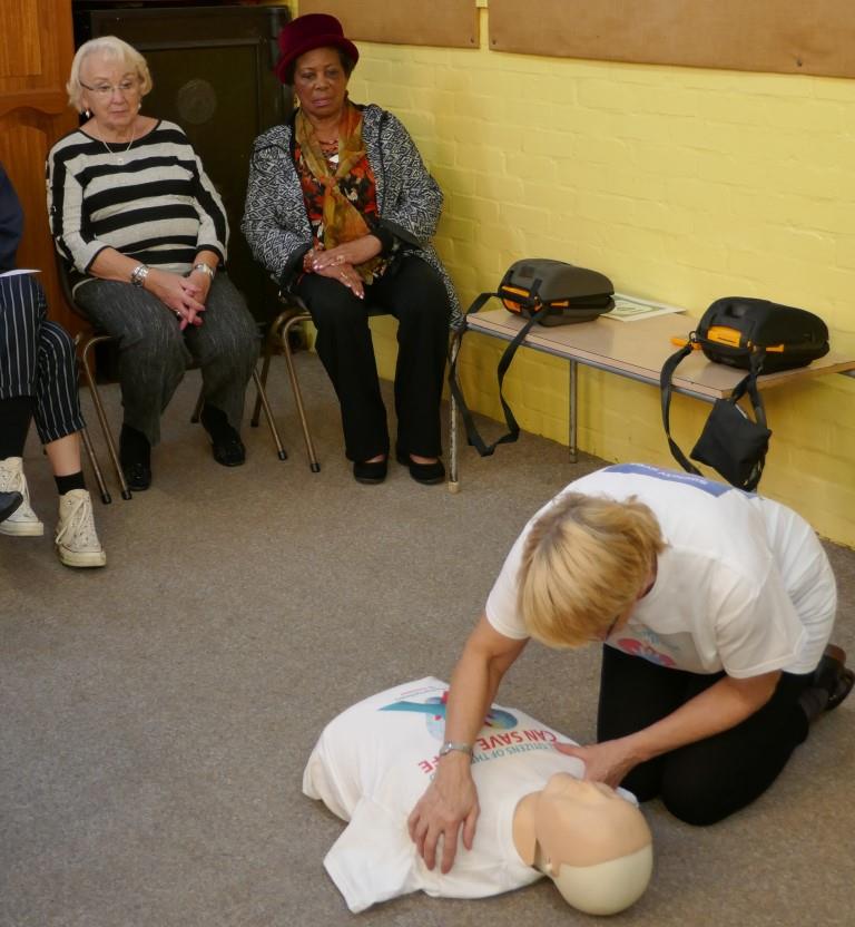 In fact Monday 16th October was “world resuscitation and Save a life day” . 21 volunteers and older members from CGN took part in two sessions. Plenty of interesting questions were asked and Cath went through the procedure from the moment someone collapses through to using the defibrillator and continuing chest compressions. Everyone felt reassured that the machine told them the steps to take.