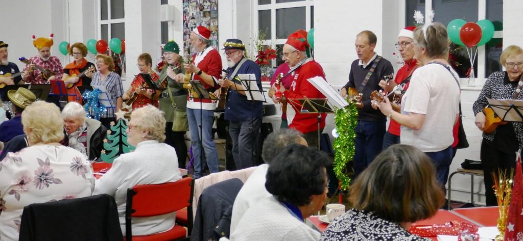 The Christmas party on Sunday 2nd December saw 65 of our older users come together to enjoy food, bingo, pass the parcel, quiz, and entertainment from the Chorlton Ukelele Group. There were plenty of christmas jumpers on show and as usual Dennis got into the spirit of the occasion.. …this year dressed as an elf.
