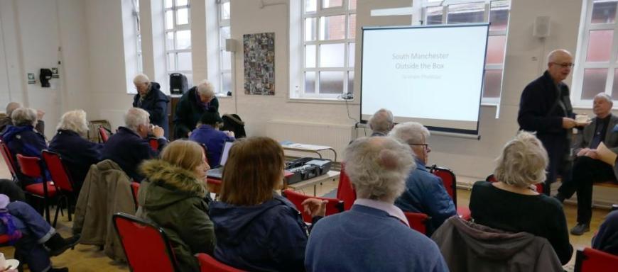 On Thursday 7th March local historian, Graham Phythian, gave a talk to 45 people about quirky facts relating to south Manchester- ghosts, sporting events , buried treasure and an Oscar winner