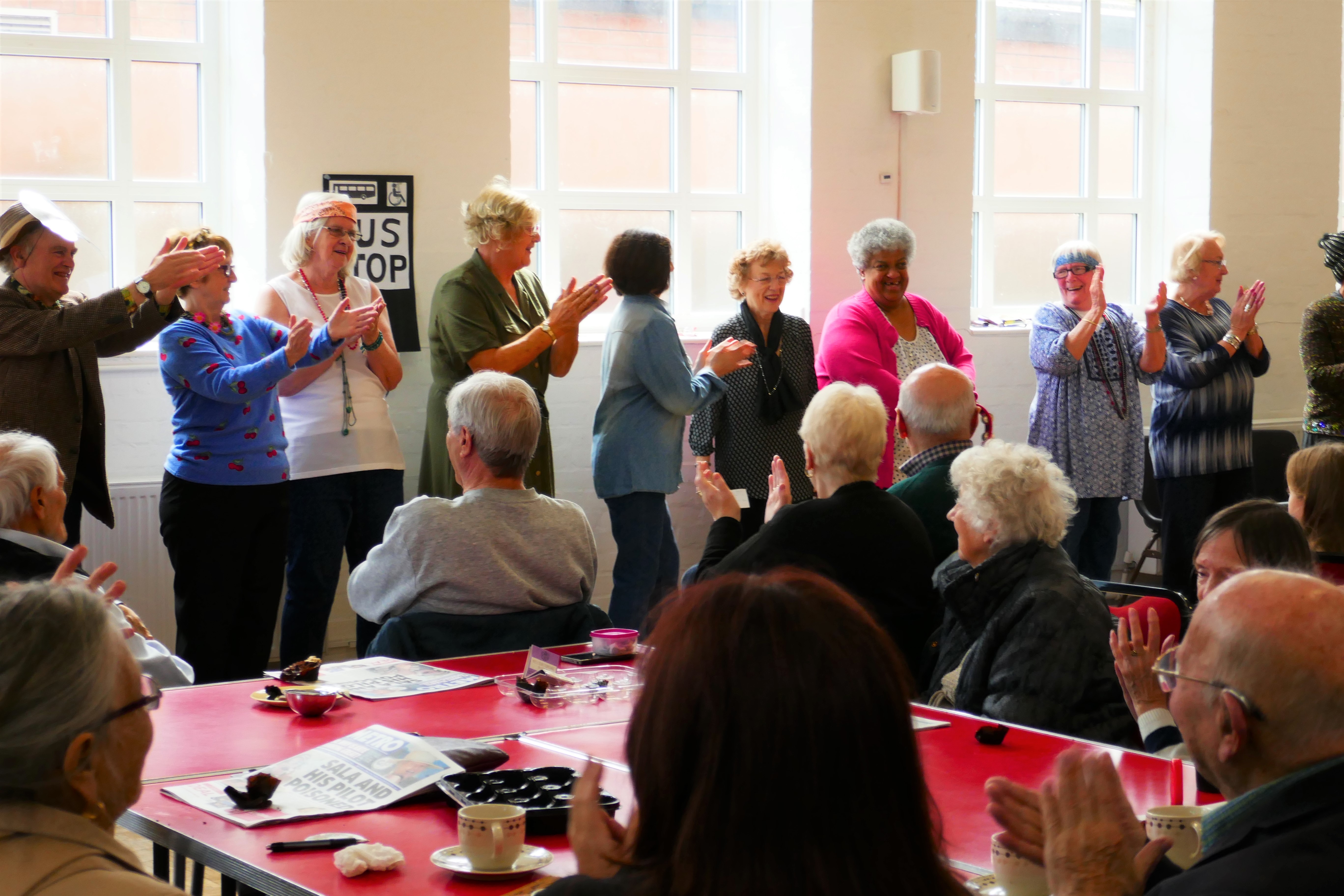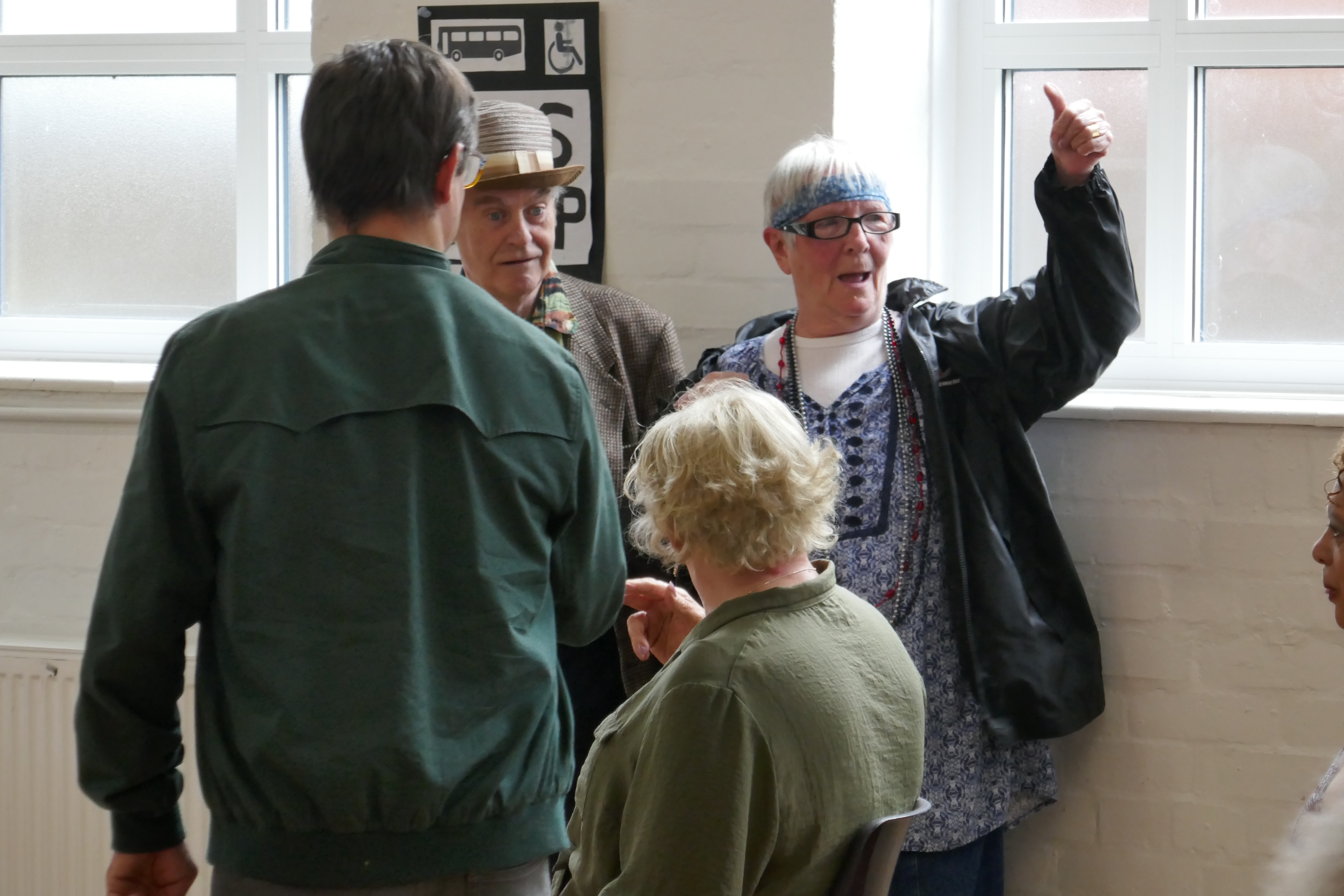 The CGN drama group performed their new production “ Staying Alive for Barry …” at the coffee morning of Aug 15th. The play wasbased around improvisation work the group did. The linking theme of transport portrayed different groups of local travellers all rushing to get to see Barry Gibb (of BeeGees fame) give a one-off performance on Chorlton Green, using either the tram, bus or even a hot air balloon. As with previous productions there was much humour and lots of singing (“Staying ALive” of course was included)