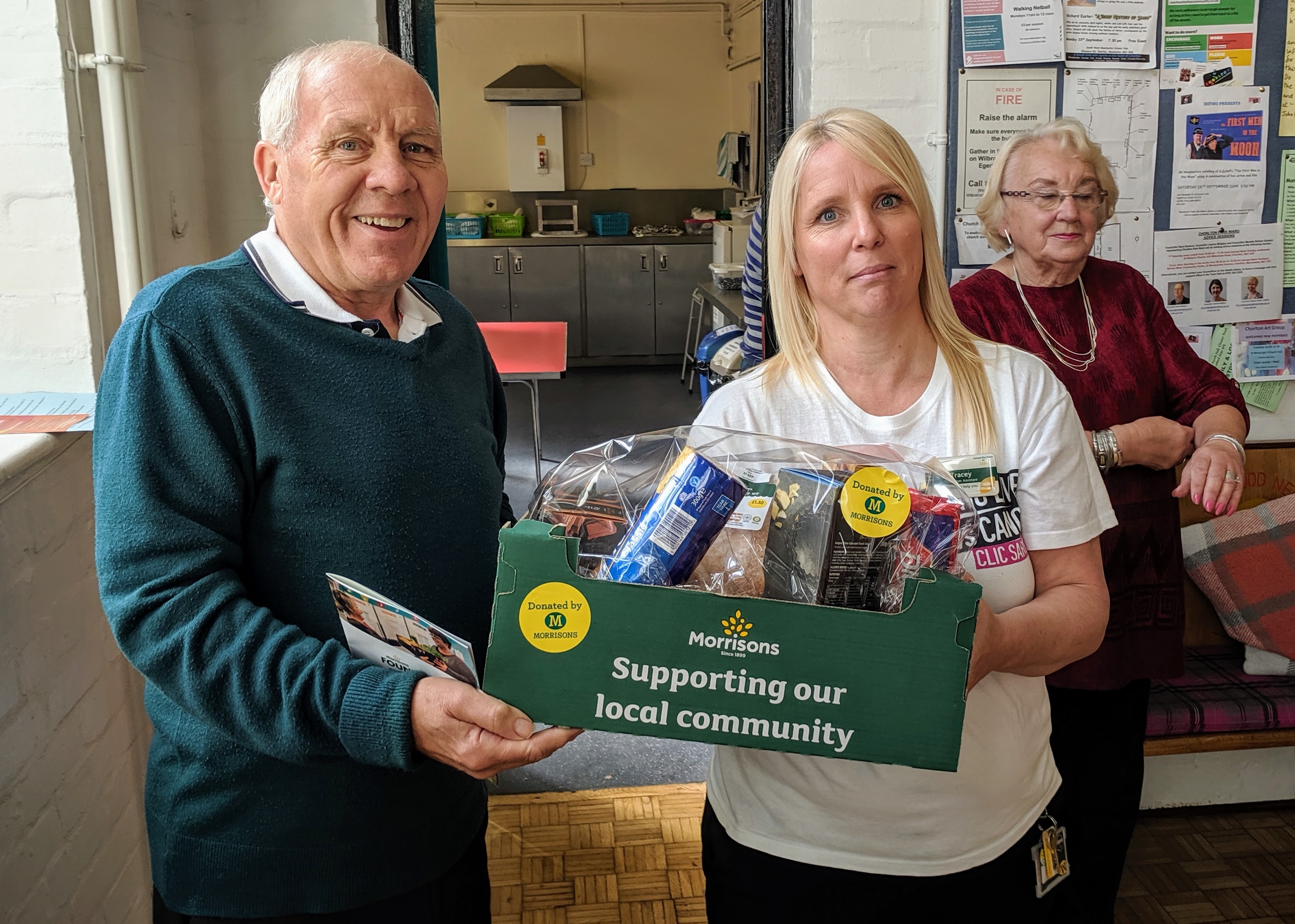 Tracy from Morrisons Chorlton, presenting a box of tea and coffee for the AGM which she presented to Arthur