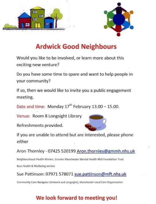 This is the leaflet that the nascent Ardwick Good Neighbours (AGN) distributed about the meeting today (17-02-20)