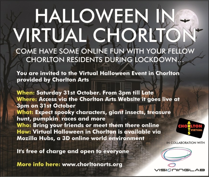 Halloween in virtual Chorlton & a free course in accessing a virtual world Share this: Click to share on X (Opens in new window) X Click to share on Facebook (Opens in new window) Facebook Like Loading... Related
