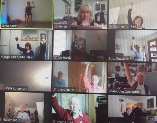 Although we were able to resume with 3 Monday afternoon exercise sessions, they have had to be suspended at the start 2nd The good news though is that we have set up a zoom exercise session with instructor Karen each Thursday Morning 11-12. She does a combination of sitting and some standing balance work. Participants use hand weights (or tins of beans) and stretch bands (I can give you one) and we have a really good workout, going at our own pace. Please come and give it a go if you have a computer and could give zoom a try.