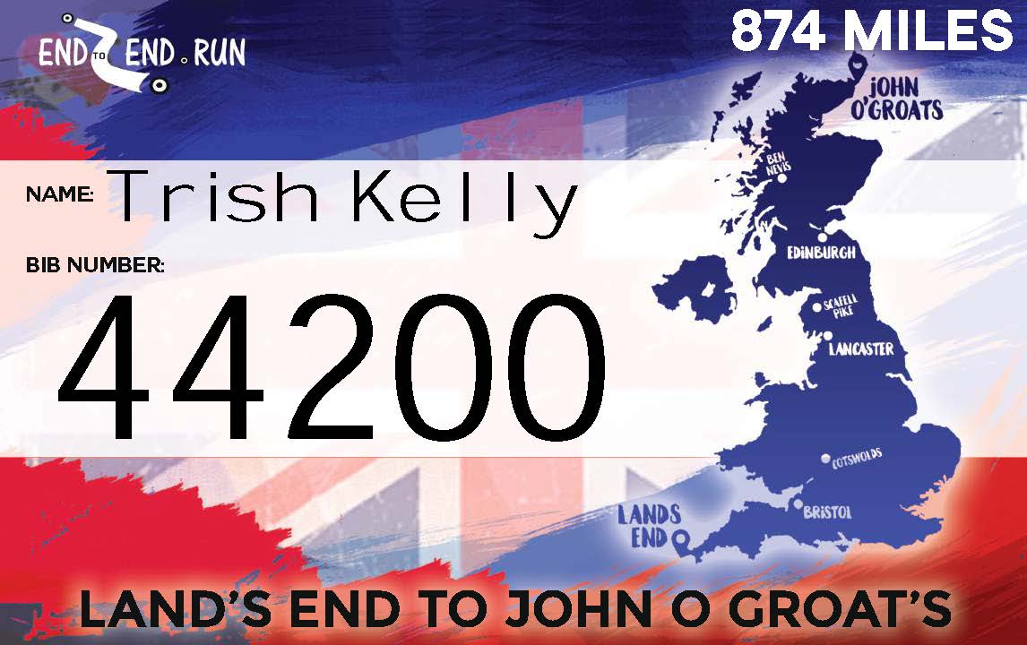 walking/running the equivalent distance from Land`s End to John O`Groats (874 miles)