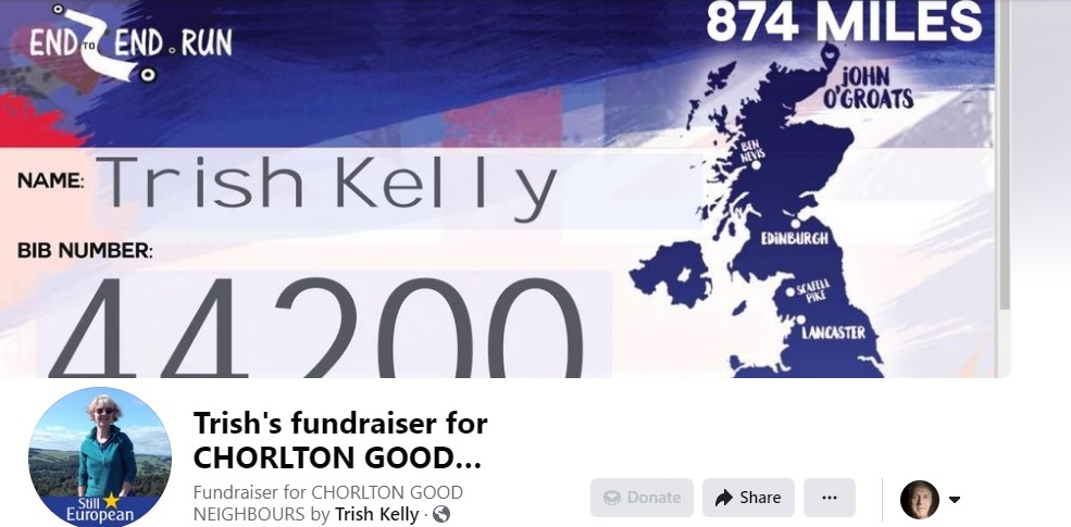 Trish Kelly, a CGN volunteer) has already raised over £400 for Chorlton Good Neighbours, please support her efforts . She has a long way to go yet!
