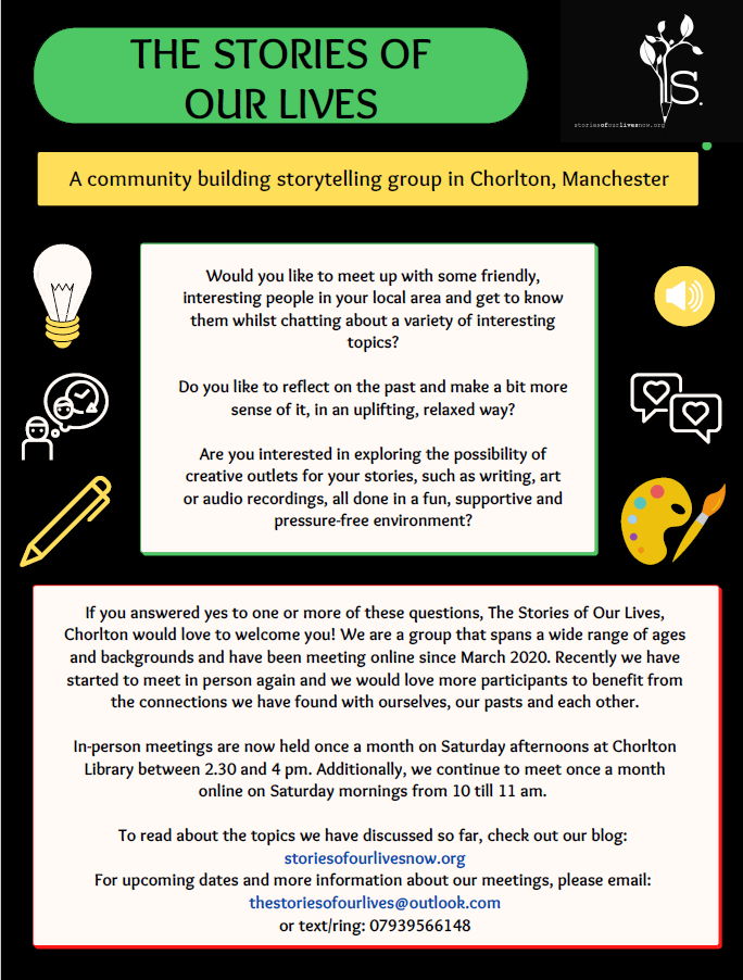 2. The Stories of our Lives sessions taking place on Zoom and in the library, recalling memories around all sorts of topics.