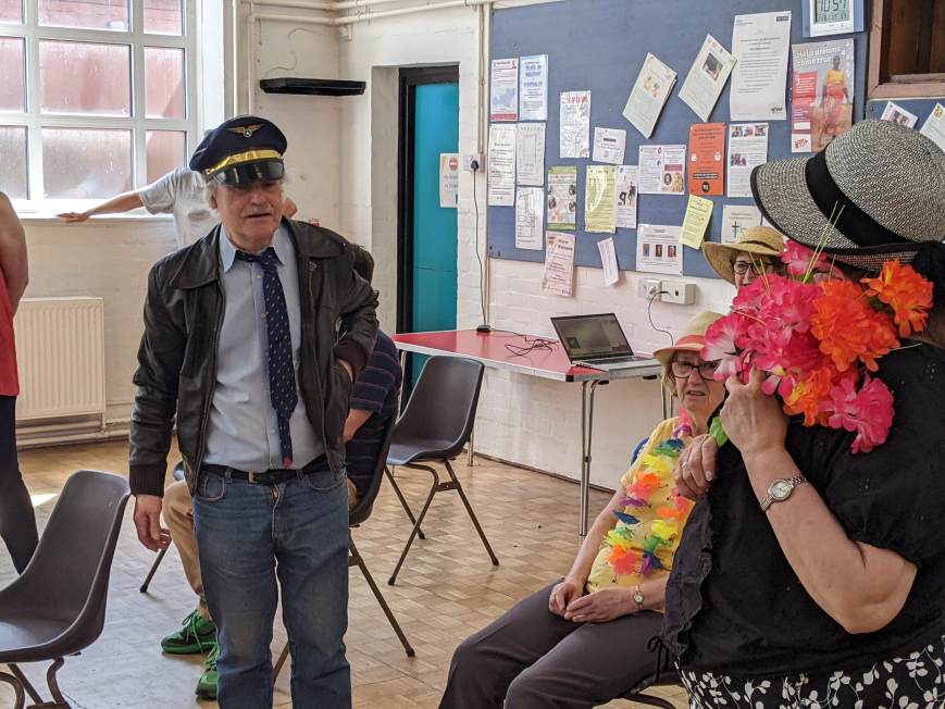 ‘Flowers’ a comedy by Chorlton Good Neighbours Drama Group, was performed in front of the coffee morning regulars on Thursday May 18th 2023. These clips from the performance give a flavour of of their surreal approach which their audience seemed to have no problem in following